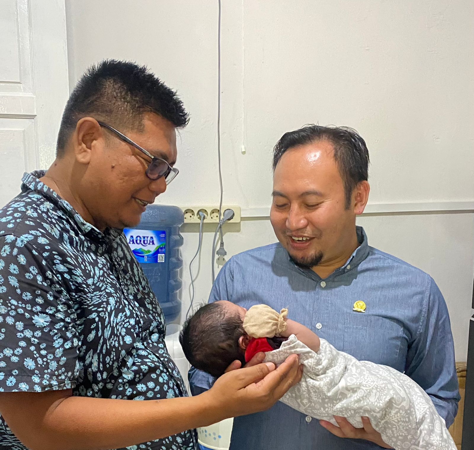 Rahmat, dari Fraksi PKS menyempatkan diri melihat Aksara putra pertama dari wartawan Harian Rakyat Sumbar Boban Yr di tengah kesibukan tugas kedewanannya, setelah Safari Gemar Ikan di Pauh, Padang.