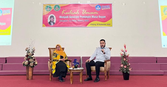 Padang,92news.id – Fadly Amran Dt Paduko Malano, Ketua Gebu Minang Sumatera Barat dan juga Mantan Wali Kota Padang Panjang 2018-2023, hadir sebagai narasumber dalam kuliah umum di Sekolah Tinggi Ilmu Ekonomi (STIE) “KBP” Padang pada hari Sabtu (28/9). Kuliah umum yang bertema “Menjadi Generasi Pemimpin Masa Depan” ini dihadiri oleh ratusan mahasiswa yang antusias mendengarkan paparan dari salah satu tokoh muda Minang ini.