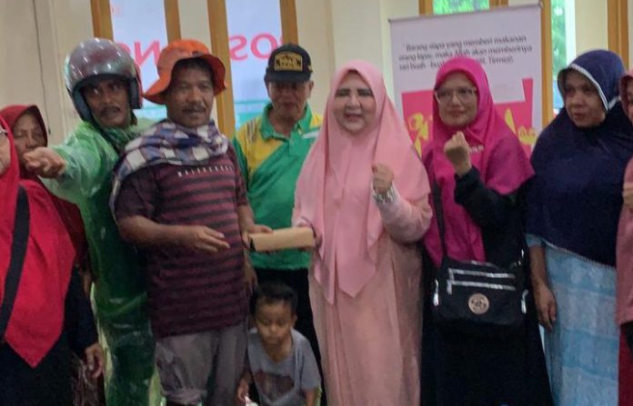 Anggota Komisi VI DPR RI Hj. Nevi Zuairina memberikan bantuan kepada korban bencana.(foto:dok)