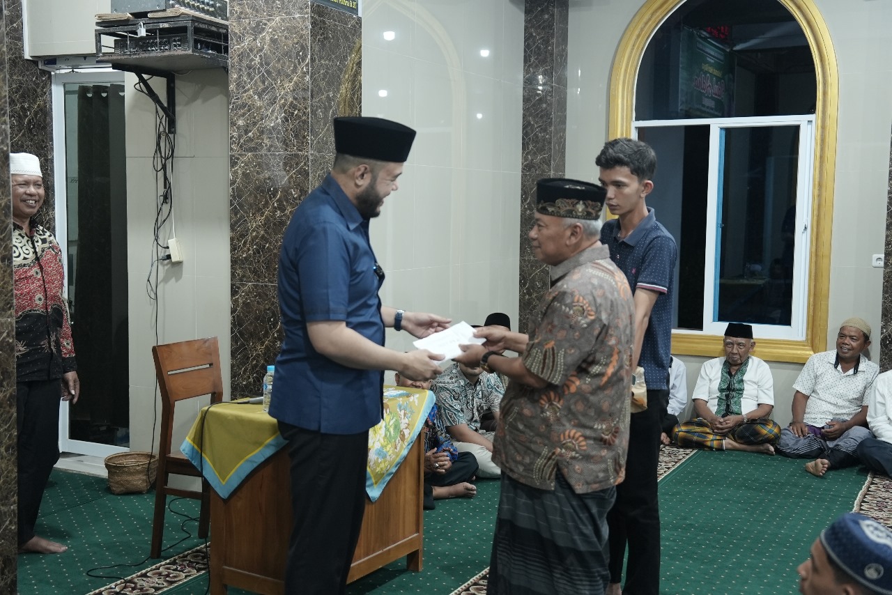Fadly Amran berikan bantuan pada pengurus saat menghadiri wirid di mushalla Al-Anahaar,selasa 30/7/24.(foto:dok)