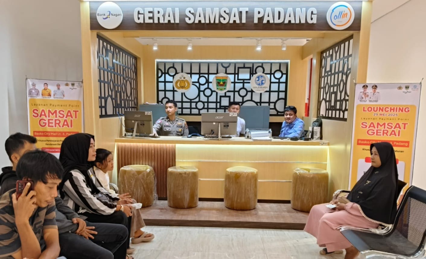 Padang,92news.id – Membayar pajak kendaraan bermotor sekarang sudah bisa dilakukan di Basko City Mall. Terhitung Rabu (11/6/2025) Gerai Samsat (Sistem Administrasi Manunggal Satu Atap) di Basko City Mall resmi beroperasi. Dengan itu, masyarakat membayar pajak kendaraan tak perlu harus jauh-jauh datang langsung ke Kantor Samsat Padang.