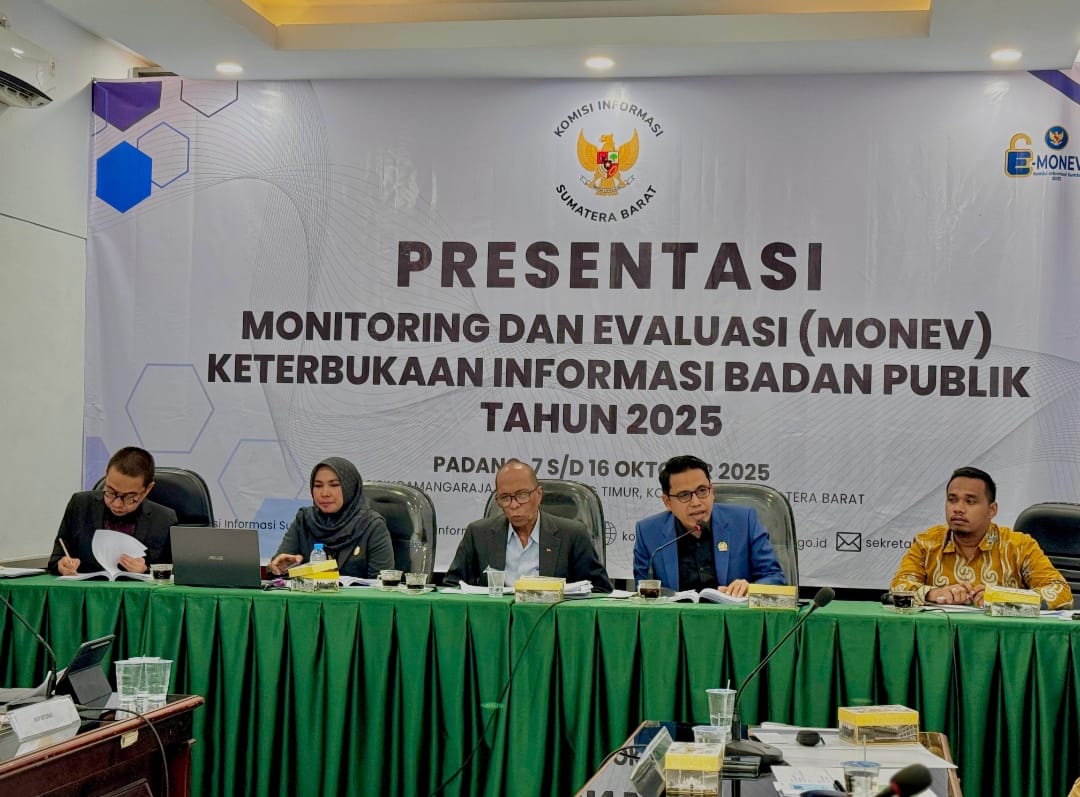Komisioner KI Sumbar sampaikan Hasil sementara Monev 2025 Keternukaan Informasi Publik di kantor KI Sumbar.(foto:dok)