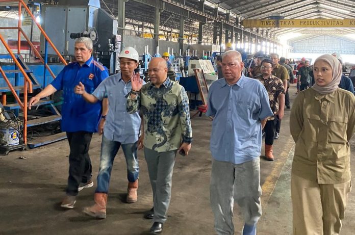 Setelah pembukaan, Ilham meninjau pabrik Kunango Jantan Group bersama Ketua BKM-PII Insannul Kamil dan Ketua Pelaksana Rakernas 2025 Prof. Is Prima Nanda.