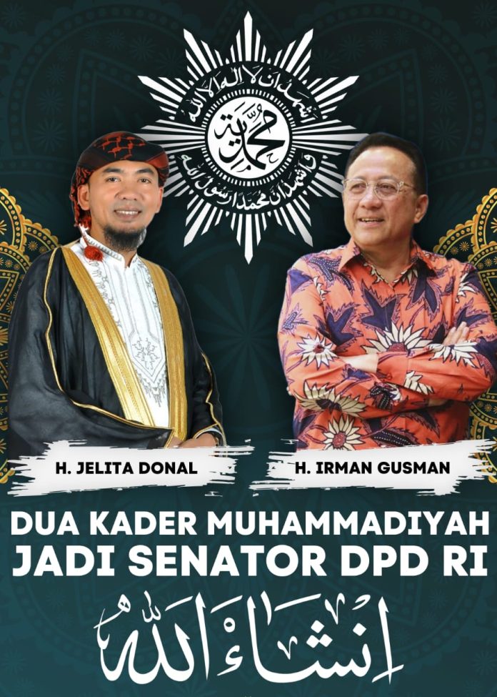 Dua Kader Muhammadiyah Sumbar Ust. Jelita Donal dan Irman Gusman diprediksi terpilih menjadi Anggota DPD RI 2024-2209.(foto:dok)