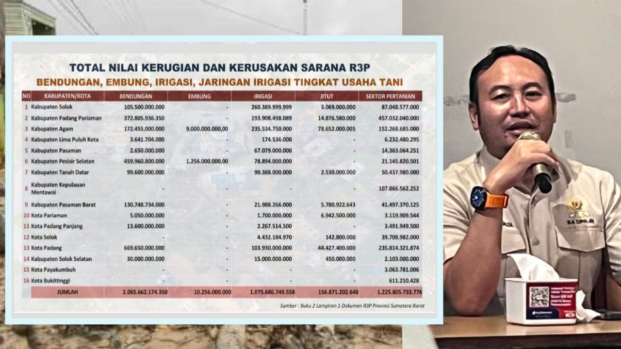 Setelah berkoordinasi langsung dengan Pemerintah Provinsi Sumbar serta pemerintah 19 Kabupaten dan Kota, terungkap total nilai kerugian dan kerusakan sektor pertanian beserta infrastruktur pendukung mencapai sekitar Rp 4,53 triliun.