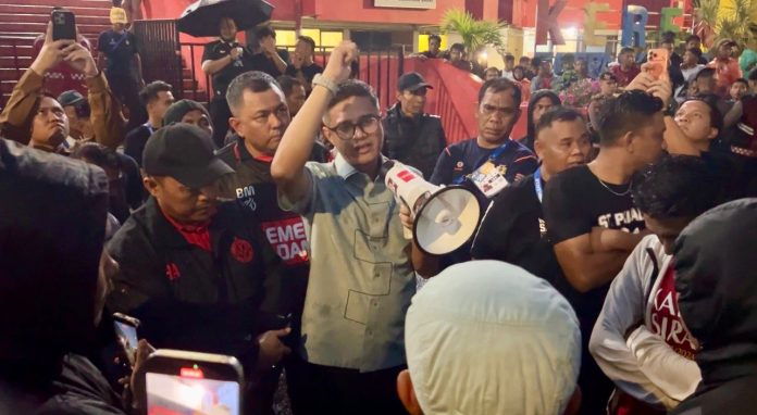 Komisaris Utama Semen Padang Ilham Azre saat merespon tuntutan suporter semen padang fc dan menanggapi apa yang diinginkan suporter.(foto:dok)