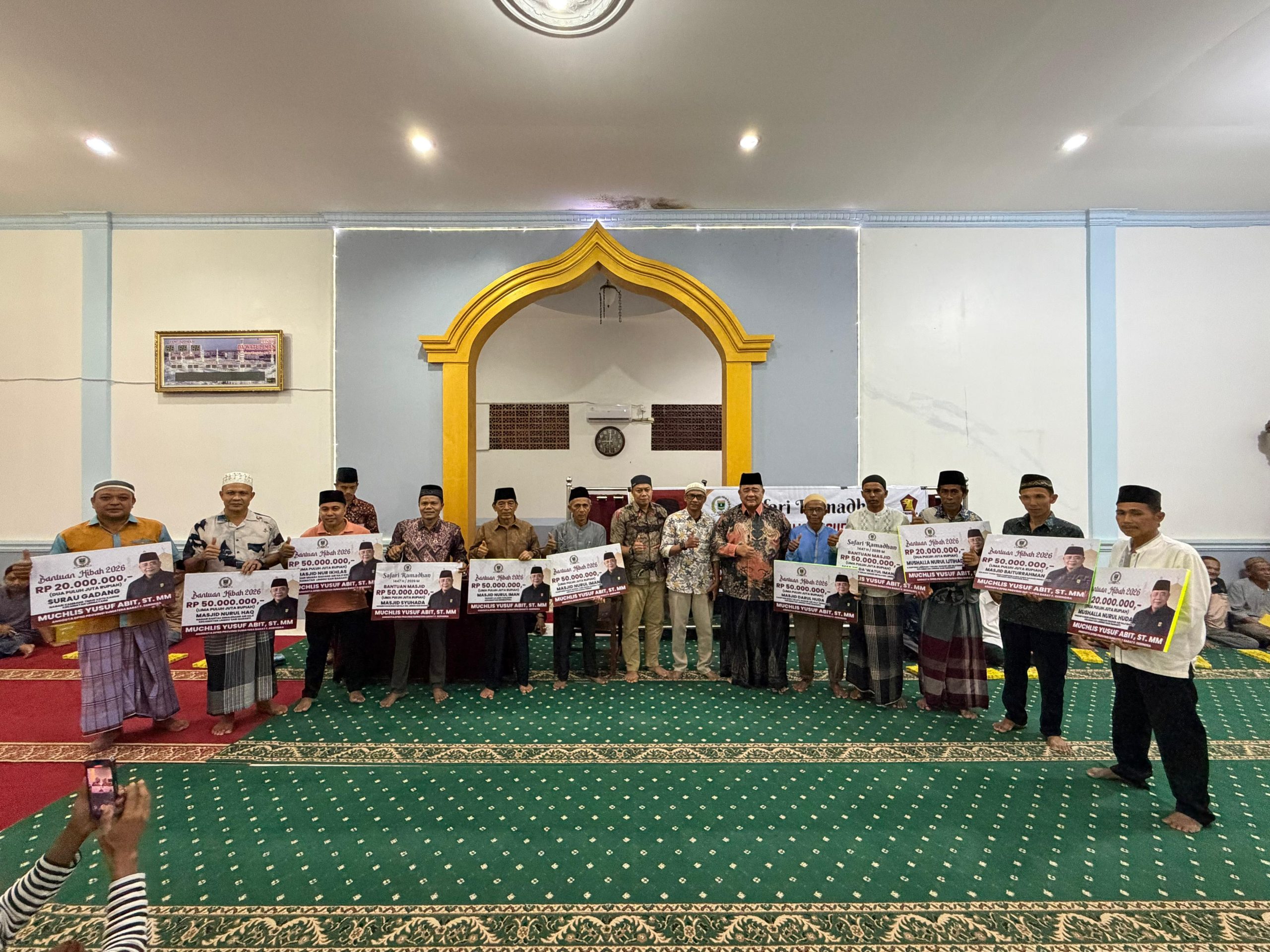 PESSEL,— Anggota Komisi III DPRD Provinsi Sumatera Barat, Muchlis Yusuf Abit, melaksanakan Safari Ramadan di daerah pemilihannya di Kabupaten Pesisir Selatan (Pessel) dengan menyalurkan bantuan sebesar Rp460 juta untuk 8 masjid dan 3 musala.