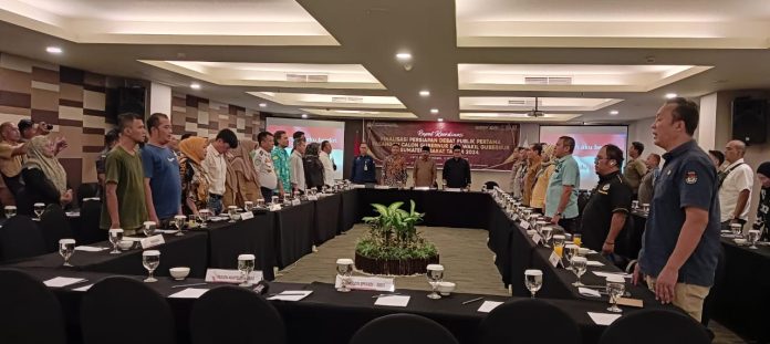 Rakor yang diadakan KPU Sumbar menjelang debat Paslon Gubernur dan Wakil Gubernur yang berlangsung dj salah satu hotel di padang,selasa 12/11/24.(foto:dok)