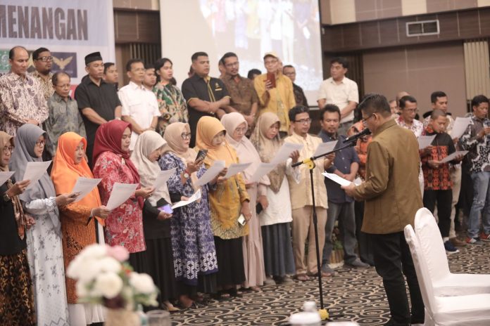 Pengukuhan Tim Pemenangan Mahyeldi-Vasko dihadiri berbagai tokoh besar di Sumbar. Tak terkecuali, para pimpinan parpol koalisi, termasuk simpul-simpul relawan yang ada.