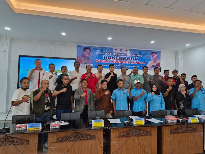 PADANG,92news.id – Untuk membangun sinergisitas antara atlet, pengurus kabupaten dan kota, serta Provinsi dalam melakukan pembinaan untuk kemajuan prestasi olahraga, khususnya Wushu dalam meraih predikat terbaik, Wushu Indonesia (WI) Sumbar melakukan rapat kerja guna merencanakan berbagai program terbaik.